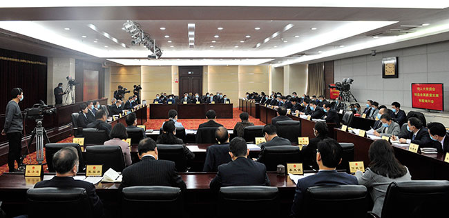12月30日上午,市十五届人大常委会第二十一次会议就我市制造业高质量发展开展专题询问。市人大常委会主任胡荃,副主任王广灿、法建强、张春阳、袁三军、王福松、孙黎参加会议。