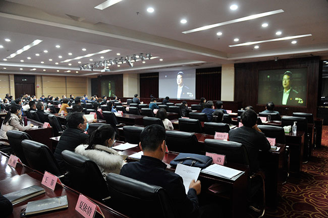 与会人员集体观看了《高压线下的疯狂——那磊案件警示录》警示教育片。