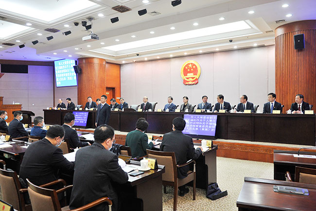 2月24日上午,市十五届人大常委会举行第二十三次会议。市人大常委会主任胡荃主持会议,市人大常委会副主任法建强、张春阳、蔡红、袁三军、王福松、孙黎、宋书杰、蒿铁群参加会议。