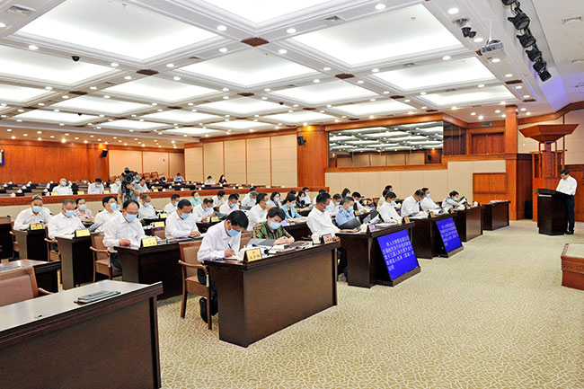 6月7日上午,市十五届人大常委会举行第二十五次会议。市人大常委会主任胡荃主持会议。市人大常委会副主任张春阳、蔡红、袁三军、王福松、孙黎、宋书杰、蒿铁群参加会议。