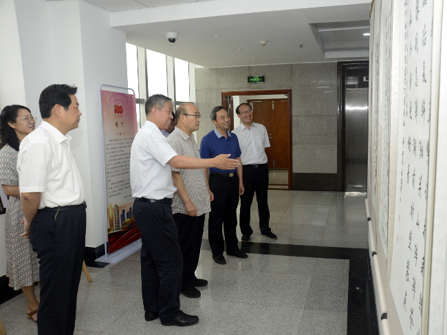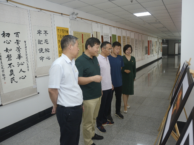 为隆重庆祝中国共产党成立100周年,7月1日,市人大常委会“翰墨颂党恩,永远跟党走”庆祝建党100周年书画摄影展正式开幕,市人大常委会主任胡荃、副主任张春阳、秘书长周亚民和常委会机关干部一同参观展览。