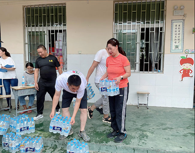 7月22日得知樱桃沟景区的受灾情况后,郑州市人大代表、英记潮味餐饮有限公司总经理王淑英迅速行动,立即购买了80件矿泉水和藿香正气水、风油精、氟哌酸、创可贴等一批常用药品,亲自送到了樱桃沟景区管委会。