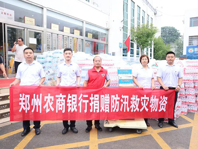 据不完全统计,仅在7月23日一天,郑州农商银行便向全辖受灾群众捐赠矿泉水500多件、方便面300多箱、火腿肠100多箱、牛奶100多箱。