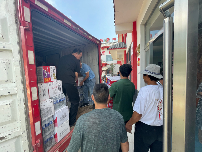 7月26日上午,市人大常委会副秘书长尹明理、农工委主任张晓英带队到登封市中岳街道办事处北高庄村看望慰问受灾群众和驻村工作专班,并送去矿泉水、方便面、八宝粥等群众急需生活用品。