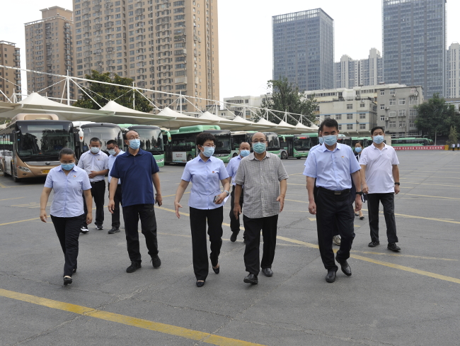 在郑州公交集团第一运营公司华山路场站,听取省人大代表、郑州公共集团董事长赵军伟关于强降雨导致的公交车辆设备损失情况,了解公交场站、站牌受损情况及快速公交公司站台损失情况,询问各项工作恢复进度,重点了解了疫情防控工作开展情况。胡荃说,郑州公交集团要全面压实各方责任,坚决克服麻痹侥幸心理,全方位梳理排查防控风险,从严从实做好各项防疫措施,切断一切病毒传播渠道,坚决防止疫情扩散蔓延。