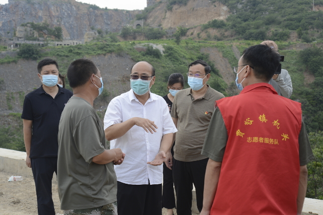 8月5日、6日,市人大常委会主任胡荃接连来到荥阳市,就灾后重建、疫情防控工作进行帮扶督导。