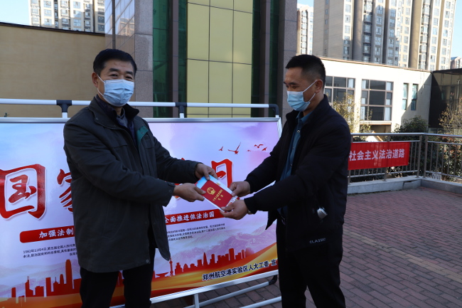 为了进一步弘扬宪法精神,增强广大群众的法治观念,推动我区普法依法治理工作,航空港区人大工委根据《2021年全区“宪法宣传周”工作方案》要求,按照年度工作安排,以国家宪法日为契机,结合“连心桥”主题活动,于12月4日上午组织部分驻区人大代表到郑港办事处荷园社区人大代表联络站开展“以习近平法治思想为指引 坚定不移走中国特色社会主义法治道路”宪法宣传主题活动。