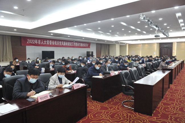 1月27日下午,市人大常委会机关召开党风廉政建设工作暨春节廉政谈话会,学习贯彻十九届中央纪委六次全会、十一届省纪委二次全会精神,加强警示教育,深化以案促改,安排部署2022年党风廉政建设工作,对机关全体党员干部开展春节廉政谈话。