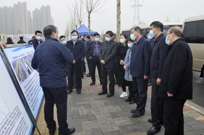 郭家咀水库和尖岗水库、常庄水库并称为郑州市头上的“三盆水”,防汛位置至关重要。调研组详细了解郭家咀水库水毁修复情况,认真询问水库除险加固、整治提升、设施完善等情况。水库整治提升工程目前已全面开工,一期建设内容包括对大坝整体进行重建、溢洪道全段加固、增设快速泄水建筑物等,争取在2022年汛期前完成。