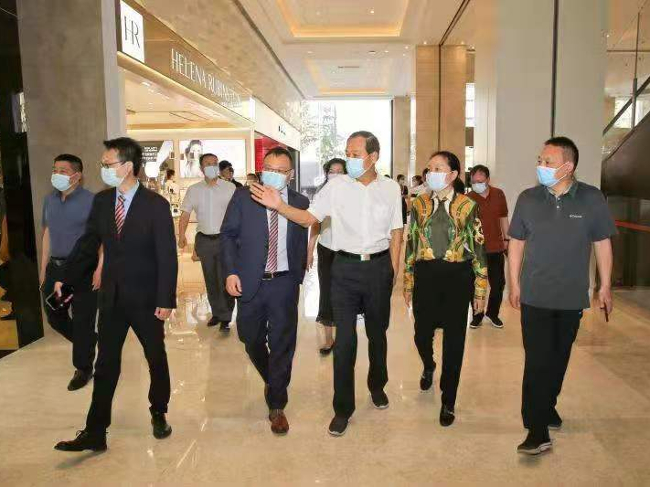 宋书杰一行在金水区有关领导的陪同下,先后来到丹尼斯大卫城、曼哈顿商业街和燕庄农贸市场,对商场、店铺、摊位落实防疫措施情况进行查看。每到一处,宋书杰都同这些场所的管理负责人、经营者进行交流,询问经营恢复情况、存在的困难、对疫情常态化防控工作有什么意见建议。