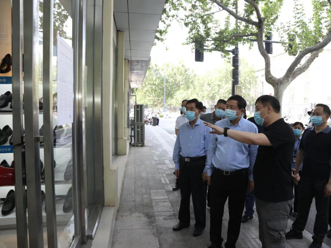 执法检查组一行首先来到城东路郑汴路至城南路段,一边查看《决定》张贴、宣传情况,一边听取办事处负责同志汇报《决定》落实情况。沿途中,不时看到有群众主动扫码、配合工作人员测体温后进入商店,顾客和卖家均规范佩戴口罩。王福松对此表示肯定,指出要持续教育引导群众主动遵守各项制度规定,让佩戴口罩和扫场所码成为一种习惯,同时也要加强对重点场所的抽查,推动《决定》常态化贯彻落实。