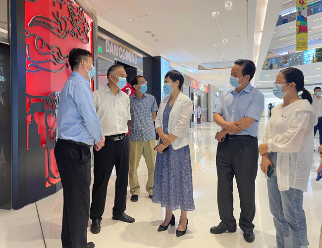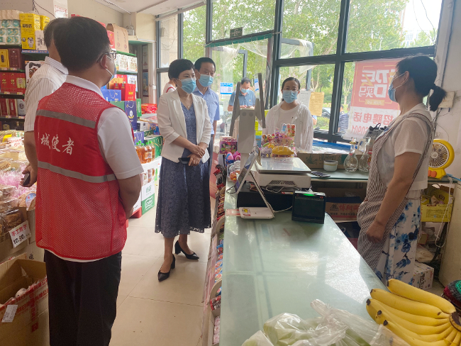 孙黎副主任一行先后来到祭城路街道办事处黄河南路社区、新田360商场,深入沿街门店、居民楼院、商场店铺等,实地检查规范佩戴口罩、进入人员扫场所码、工作人员查验扫码及测温等情况,并与有关人员交流,详细了解疫情防控工作情况、居民生产生活情况、店铺经营情况等。