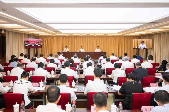 8月23日,河南省人大常委会召开建设全过程人民民主基层示范点工作会议。省人大常委会党组书记、副主任孔昌生出席会议并讲话,秘书长吉炳伟主持会议。市人大常委会主任周富强,副主任王福松、周亚民在郑州分会场以视频方式参会。