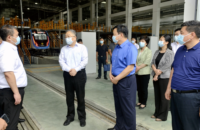 在郑许市域铁路郑州段长安北路站,调研组听取情况汇报,察看郑州段长安北路站项目建设情况;在港区北车辆段,调研组察看检修库、全自动驾驶车辆、控制中心等建设、运营准备情况。