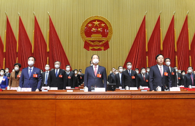 上午9时,周富强宣布:郑州市第十六届人民代表大会第一次会议开幕。全体起立,奏唱国歌。