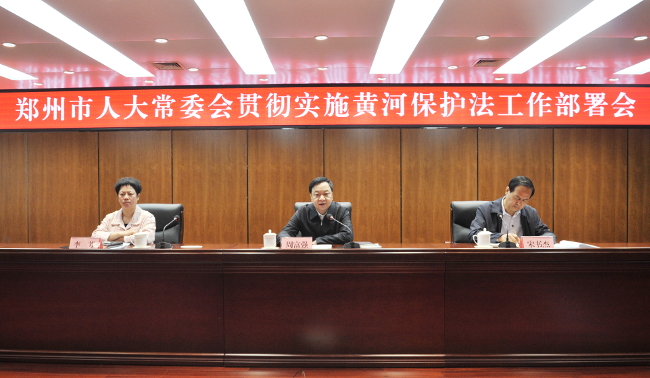 周富强要求,要牢固树立绿水青水就是金山银山理念,立足实际,抓住关键,围绕黄河保护法贯彻实施,建好用好跨区域联动、跨部门联合、与刑事司法衔接、与检察公益诉讼协作等制度机制,对标对表,统筹兼顾,确保法律规定落到实处。要坚持保护与利用相统一、传承与创新相融合,积极推进黄河文化公园等重大文化项目建设,不断完善“两带一心”文旅融合发展格局,让黄河文化真正在郑州“立起来”“活起来”“火起来”。要完善法规制度体系,发挥监督综合效应,立足人大职能,坚持综合施策,着力打出“组合拳”,推动黄河保护法在郑州落地见效,要全方位、立体式开展黄河保护法宣传工作,借助代表联络站、基层立法联系点等平台,让黄河保护法走到群众身边、走进群众心里,推动全社会形成尊法学法守法用法的浓厚氛围。