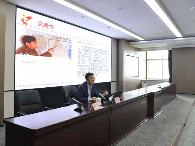 河南省委党校(河南行政学院)法学教研部主任、副教授徐航受邀,从习近平法治思想的重大意义、形成依据、核心要义、科学方法等方面对习近平法治思想进行了深入解读。授课主题鲜明、思想深刻,旁征博引、深入浅出,既有政治高度、理论深度,又有实践热度、感染力度,为机关全体干部学习贯彻习近平法治思想理清了思路、明确了方向。
