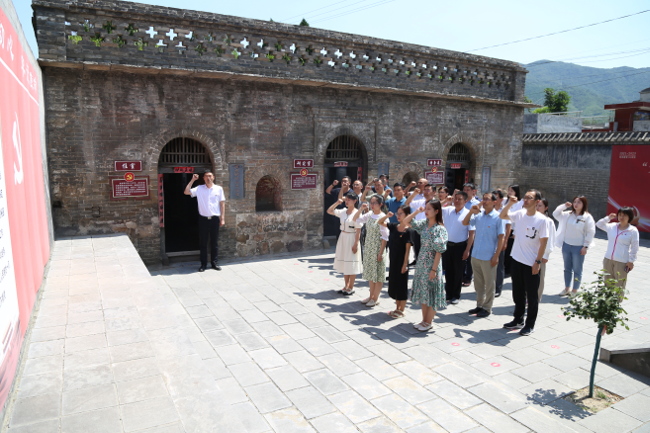 跟随讲解员的介绍和讲解,党员们先后来到巩县抗日民主政府旧址、豫西地委党校旧址、豫西抗日先遣支队司令部旧址参观学习,了解“皮徐支队”组建豫西抗日根据地的历程、战绩和“中原突围”等光辉历史。一个个感人的抗日故事深深吸引并感动着每一名同志,大家深切感受到革命前辈们崇高的革命理想、坚定的革命意志和大无畏的革命精神。随后,举行了庄严的新党员入党宣誓暨老党员重温入党誓词集体宣誓仪式,全体党员面向党旗庄严宣誓,以铿锵有力的宣誓声缅怀先烈、牢记初心使命。