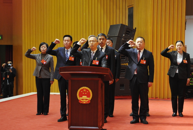 随后,大会选举产生和表决通过的以上国家工作人员进行了宪法宣誓。
