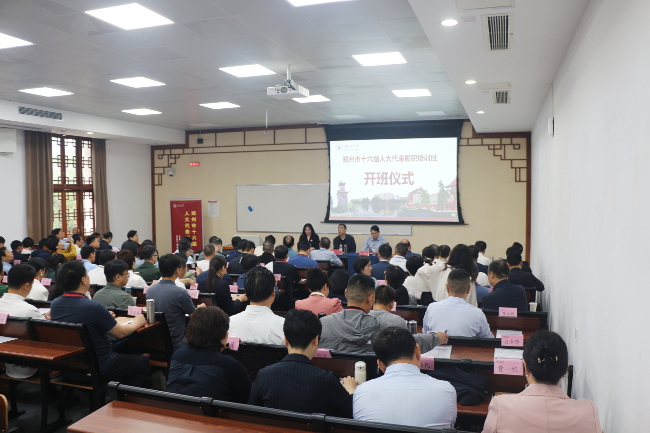 在开班仪式上,市人大常委会副主任朱河顺要求:要深入学习贯彻习近平新时代中国特色社会主义思想,学习《中国共产党纪律处分条例》,学习人大的法律法规和议事规则,广泛学习各方面知识,夯实代表依法履职的基础;要增强服务大局能力、联系群众能力、建言献策能力、依法履职能力,更好发挥人大代表主体作用;要放下事务专心学、放下架子虚心学、放下杂念安心学,切实提高代表学习实效。同时要求代表本着对党和人民事业高度负责的态度,始终保持奋发有为的精神状态,依法履职尽责,积极担当作为,为全面推进中国式现代化建设郑州实践作出积极贡献!