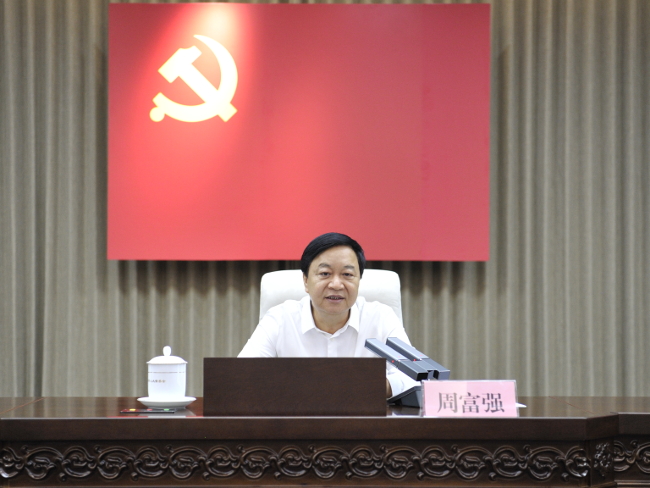 周富强要求,要心中有党,在绝对忠诚上当先锋、作表率,把对党忠诚作为政治生命存亡、个人事业沉浮、名节品行荣辱的根本,永怀赤诚忠心、永葆政治本色。要心中有责,在推动发展上当先锋、作表率,继续发扬斗争精神,知责履责、担责尽责,以更高站位更实举措推动人大各项工作。要心中有戒,在遵规守纪上当先锋、作表率,奋力拼搏、勇于进取,走好新时代赶考之路,用新的姿态、新的干劲、新的作风推动新时代人大工作创新发展,以优异成绩庆祝建党103周年,迎接新中国成立75周年、人民代表大会制度建立70周年。