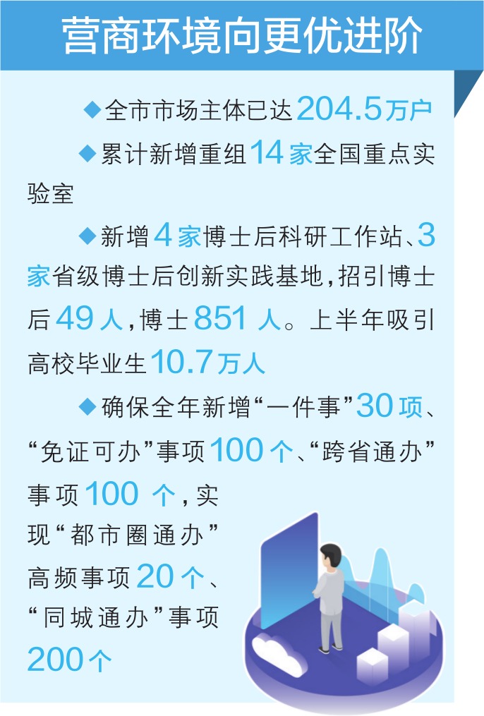 优良的营商环境是稳定市场信心、激发经济发展活力、推动高质量发展的重要因素。目前,我市营商环境情况如何?推出哪些新举措新做法?8月28日,市十六届人大常委会第十一次会议听取了市政府关于优化营商环境工作情况的报告。报告提到,我市聚焦加强顶层设计、优化政务环境、规范市场环境、强化法治保障等方面,统筹推进营商环境优化创新,进一步激发市场主体活力,全力打造营商环境“升级版”。