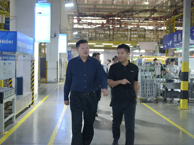 在海尔产业园区,蒿铁群一行参观了企业产品展示区,并深入生产一线,认真听取企业相关负责人对企业经营情况的介绍,详细了解企业主营产品、生产流程、创新方向等情况。蒿铁群对企业在各职能部门的扶持下,紧抓技术创新,扩展产品线,在各级市场取得的优秀成绩给予了充分肯定。鼓励企业再接再厉,抢抓“一带一路”机遇,加大国际市场开拓力度。
