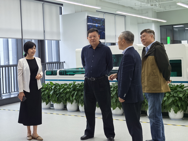 在安图生物股份有限公司,蒿铁群一行实地查看了安图检验医学博物馆、产品展示馆,了解了医学检测发展史及安图生物医学领域产品应用,听取了企业在产品研发创新、未来产业布局、各优惠政策享受等方面的汇报。蒿铁群勉励企业要持续扩大免疫诊断产品等拳头产品的研发生产技术优势,进一步坚定信心,积极进取,为人民群众的健康事业作出更大贡献。最后,蒿铁群指出,希望税务部门继续落实好郑州市进一步加强制造业高质量发展的工作要求,持续推进各项惠企政策措施落地,助力经济社会发展。