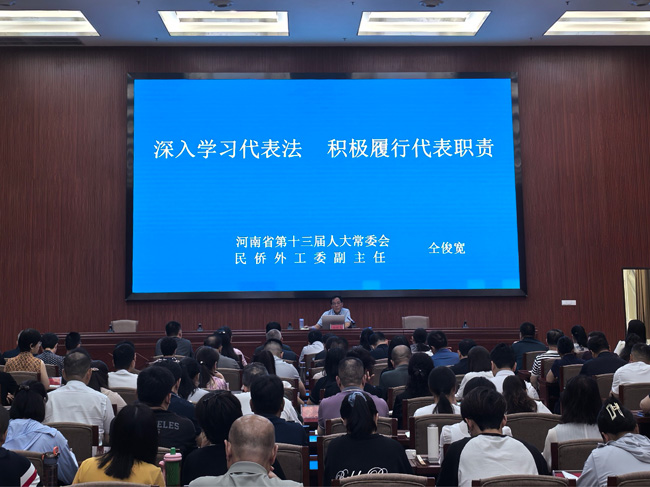 课堂教学深耕专业知识。为进一步提升代表履职能力,此次培训紧扣代表工作实际,以多元化、专业化的课程,为代表们筑牢履职根基。“贯彻落实习近平法治思想 提高人大代表的法治思维能力”课程,从提高法治思维能力的必要性、重难点和途径三个方面,结合典型案例,以深入浅出的讲解方式,系统引导代表们在履职实践中自觉运用法治思维分析问题、以法治方式开展工作;“当前国际形势与国家安全”课程,深入剖析当前国际经贸形势和中美博弈的逻辑分析,帮助代表树立正确国际视野,深刻认识国家安全的重要性,维护国家核心利益;“代表法解读”专题教学,邀请省人大常委会民侨外工委副主任仝俊宽授课,以新修改的《代表法》为核心切入点,从理论与实践两个方面展开系统解读,帮助代表们精准把握条文的内涵与边界,切实将法律规定转化为履职实效;“愚公移山精神与中国共产党”课程,深入挖掘精神内涵,阐释愚公移山精神在中国共产党领导下的时代演进与核心实质,激励代表传承奋斗品质。这些课程紧扣时代需求,结合代表工作实际,为代表履职注入专业智慧。代表们纷纷表示:“这次培训课程设置精准务实,既有法治思维、《代表法》等履职‘必修课’,又涵盖国际形势、精神传承等视野‘拓展课’。授课中,案例剖析深入浅出,法律解读精准透彻,不仅帮助大家夯实了履职理论根基,更为今后将所学所悟转化为履职动力、提升履职实效指明了方向。”