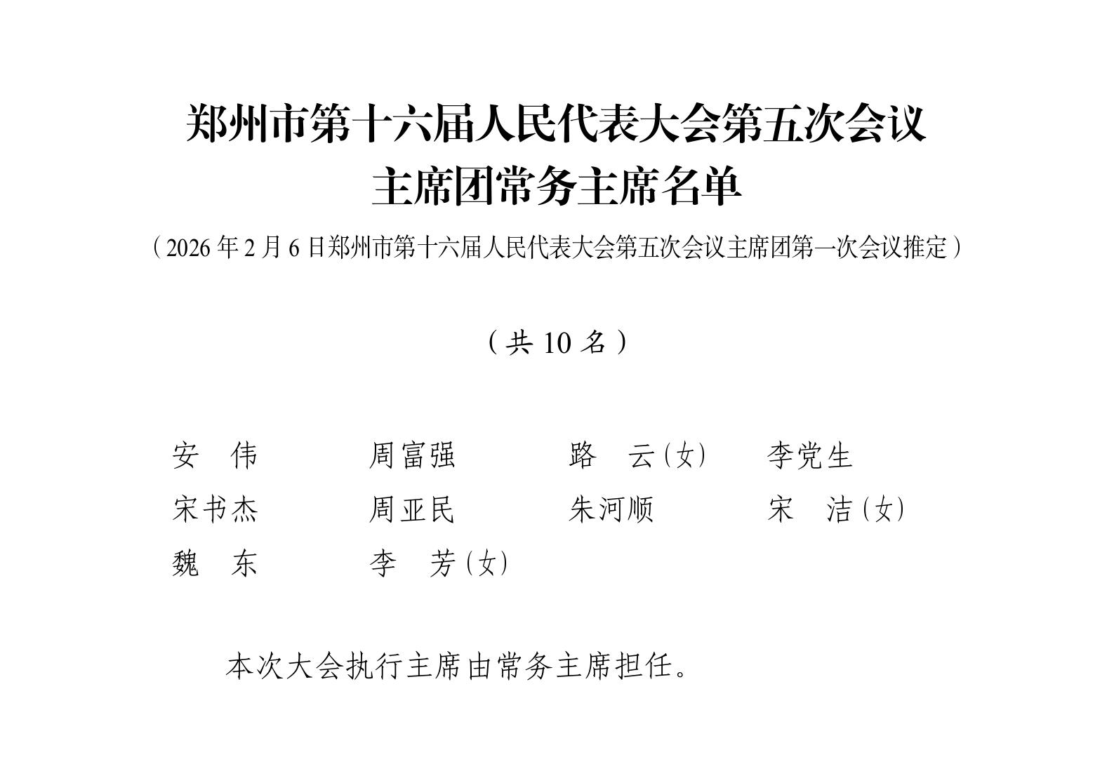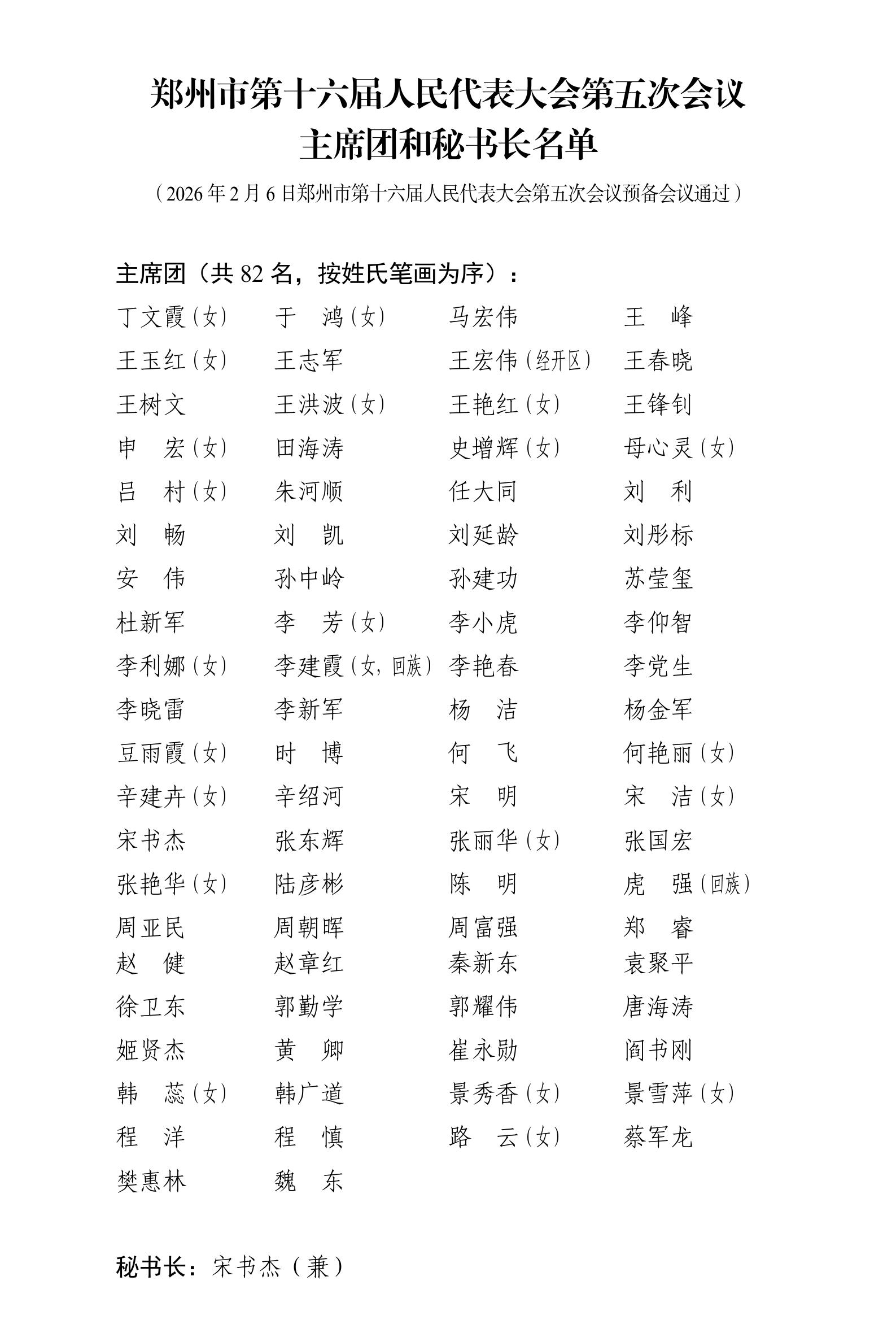 市十六届人大五次会议预备会议、主席团第一次会议通过各项名单