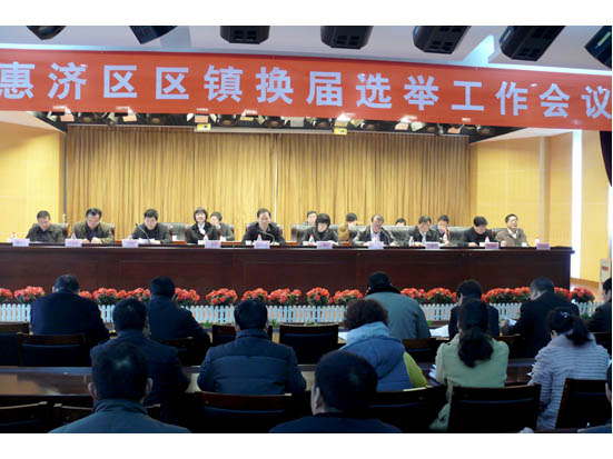 会上,惠济区委常委、组织部长王雅伟宣读了《中共惠济区委转发<区人大常委会党组关于做好全区区镇两级人民代表大会换届选举工作的意见>的通知》(惠发【2011】10号)。根据安排,惠济区区镇两级换届选举工作在区委的统一领导下,于2011年12月1日至2012年4月30日期间同步进行,分别选举出157名区人大代表和84名镇人大代表。共分准备工作、选民登记、提名确定代表候选人、投票选举、召开新一届区镇两级人民代表大会和总结工作等六个阶段进行。2012年12月31日前进行宣传发动,2012年1月10日前完成选民登记,2012年2月5日前推荐出代表候选人并公布候选人名单,2012年2月20日前后同步选举区镇两级人大代表。2012年3月下旬前召开各镇新一届人民代表大会第一次会议。2012年4月中旬前召开惠济区第二届人民代表大会第一次会议。