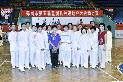 6月16日,在市体育馆悠扬柔和的乐曲声中,全市太极拳比赛各代表队纷纷登场亮相。市人大常委会办公厅代表队在机关工会主席徐梅枝的带领下,穿着白色太极服,整齐划一、神态自然、动作如行云流水、将太极拳柔中寓刚、虚实相间的意境演绎得淋漓尽致。向大家充分展示了市人大常委会机关团结拼搏、奋发向上的精神风貌。经过近一个多月的艰苦训练,在郑州市第五届市直机关运动会太极拳集体项目比赛中,队员们冒酷暑、顶烈日,按时按点,克服种种困难,经过系统严格训练,最终夺得了好成绩,获得太级拳集体项目比赛一等奖。