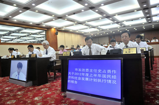 市十三届人大常委会第三十次会议上,常委会组成人员认真听取报告。