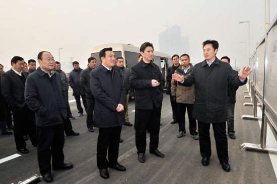 12月20日市人大常委会视察组察看北三环文化路立交桥建设现场