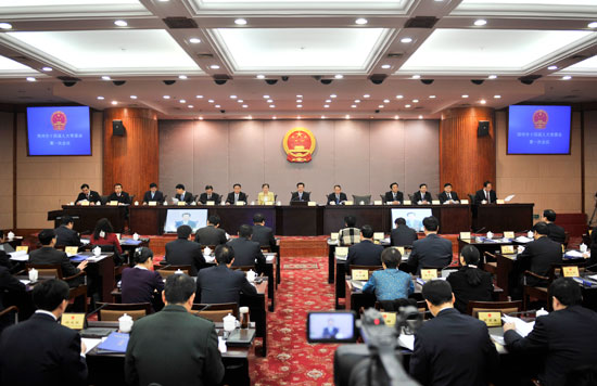 市十四届人大常委会第一次会议第一次全体会议现场