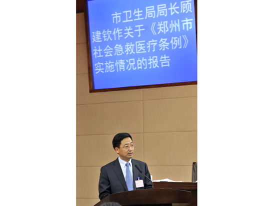 市卫生局局长顾建铁作关于《郑州市社会急救医疗条例》实施情况的报告