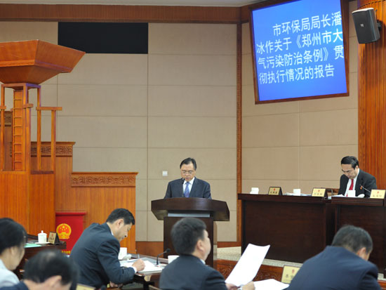 市环保局局长潘冰作关于贯彻落实《郑州市大气污染防治条例》情况的报告