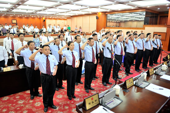 会议还表决通过了市中级人民法院的有关人事任免案。新任职人员接受任命书并举行了就职宣誓仪式。