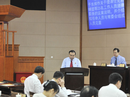 市中级人民法院院长于东辉作关于提请任免郭晓堃等25名工作人员法律职务的议案说明