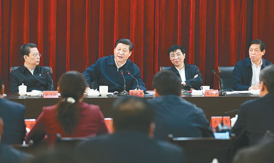 3月18日,习近平听取兰考县教育实践活动情况汇报,并发表重要讲话。新华社发