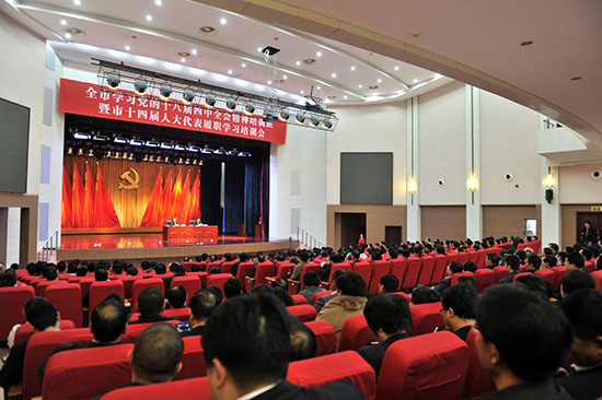 培训期间,省委常委、市委书记吴天君于11月7日为人大代表作了专题辅导报告。他指出,党的十八届四中全会是在全面建成小康社会进入决定性阶段、改革进入攻坚期和深水区、从严治党全面推进的新形势下召开的一次十分重要的会议。全会通过的《决定》,阐明了全面推进依法治国的重大意义、指导思想、总体目标和重大任务,符合时代发展要求,顺应党心民心,深刻表明了我们党坚定不移走中国特色社会主义法治道路的鲜明态度,吹响了建设社会主义法治国家的进军号。全市人大代表要充分认识、准确把握党的十八届四中全会的重大意义和精神实质,结合实际学习好、贯彻好、落实好全会精神。
