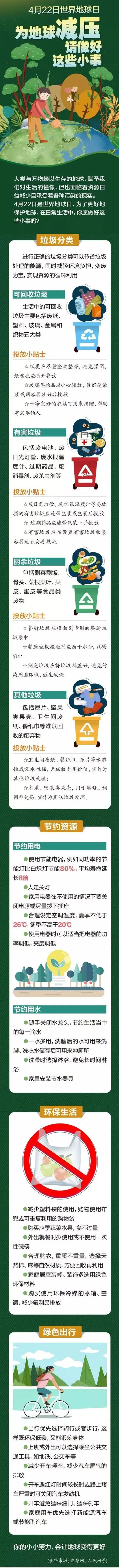 人类与万物赖以生存的地球,赋予我们对生活的憧憬,但也承受着各种污染。4月22日是世界地球日,为了更好地保护地球,在日常生活中,你愿做好这些吗?