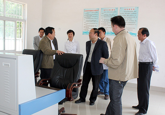 在九龙镇供水站,周主任仔细查看了供水站基础设施,详细询问了供水站建设情况、供水情况和周边村民的用水安全情况,听取了中牟县供水站建设及搬迁情况汇报。九龙镇供水站是中牟县农村饮用水安全工程2009年第三批扩大内需中央预算内投资项目。工程位于九龙镇八里湾村,占地9.96亩,设计供水规模为日供水5000吨,水源为地下水,主要解决供水站周边8个行政村,13个自然村和九龙镇企事业单位共1.5万余人安全饮用水问题。工程2009年开工建设,2010年1月10日竣工,2010年2月投入使用,工程总投资633.98万元。