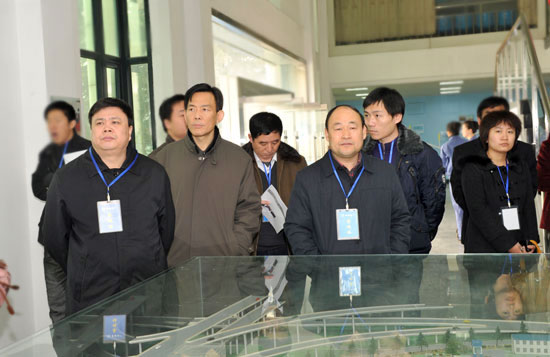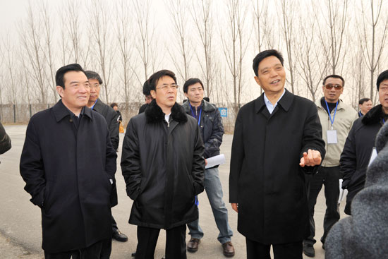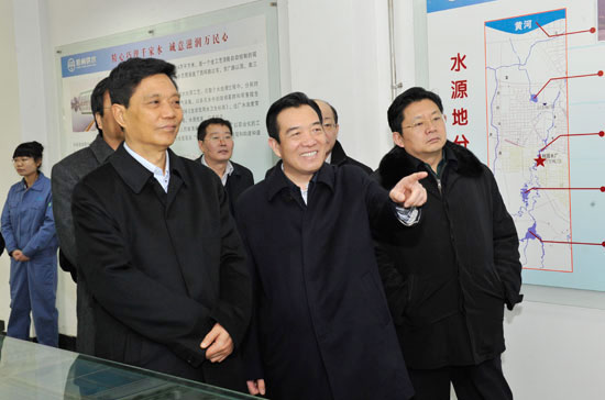 市人大常委会主任白红战(右二),副市长朱是西(右一)陪同全国人大环资委副主任委员张云川(前排左一)调研我市饮用水安全保障工作