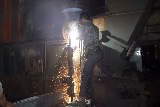 上午9点,在嵩山路伊河路口,河南工业大学一台10蒸吨锅炉正在切割拆除。一台2蒸吨的燃气锅炉已于5月7日通气运行,这台锅炉基本能满足校园内现在做饭、洗浴、开水供给;另有一台10蒸吨的燃气锅炉今年10月正式开通,两台加一起基本能满足学校供暖。