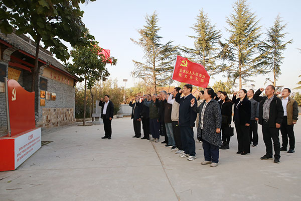 在纪念馆广场上,面对鲜红的党旗,全体党员举起右拳,庄严宣誓,重温入党誓词,进一步激发了全体党员的爱国热情,并合唱了歌曲《没有共产党就没有新中国》,嘹亮的歌声缭绕在金秋时节的天空,表达着对党对祖国的深沉热爱。随后,党员们在讲解员的引导下,参观了纪念馆各个展室的历史图片,聆听了革命故事,深切地感受到革命先辈崇高的革命理想、坚定的革命意志和大无畏的革命精神。