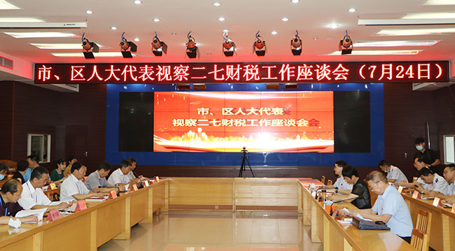 代表们一行实地察看了行政服务中心办税服务大厅,并在随后召开的座谈会上,听取了区财政局局长周彪、区税务局局长宋成刚关于财政和税务工作的情况汇报。与会代表纷纷发言,从培育涵养税源、优化营商环境、推进产业转型等方面提出了具有建设性的意见和建议。