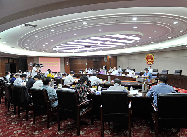 5月25日下午,市十五届人大常委会召开第三十三次主任会议。市人大常委会主任胡荃主持会议。市人大常委会副主任张春阳、蔡红、袁三军、王福松、孙黎、宋书杰、蒿铁群参加会议。