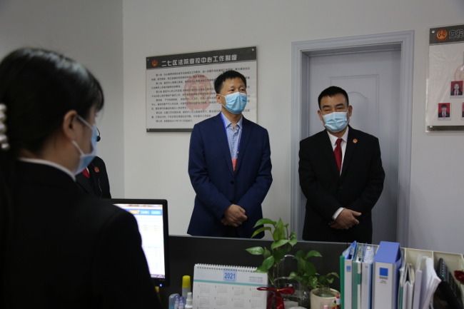 10月14日上午,二七区人大常委会组织区人大代表对区法院非诉讼纠纷化解工作进行视察。区领导吕安民、刘建峰、朱志刚、张建森、杨振河及部分区人大代表参加了视察。