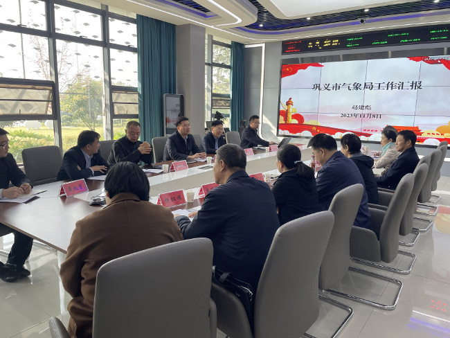 11月8日,市人大常委会副主任孙黎带队到巩义市气象局调研气象信息服务工作。市人大常委会二级巡视员尹明理、农工委主任郑深怀、巩义市政府市长张东辉陪同调研。